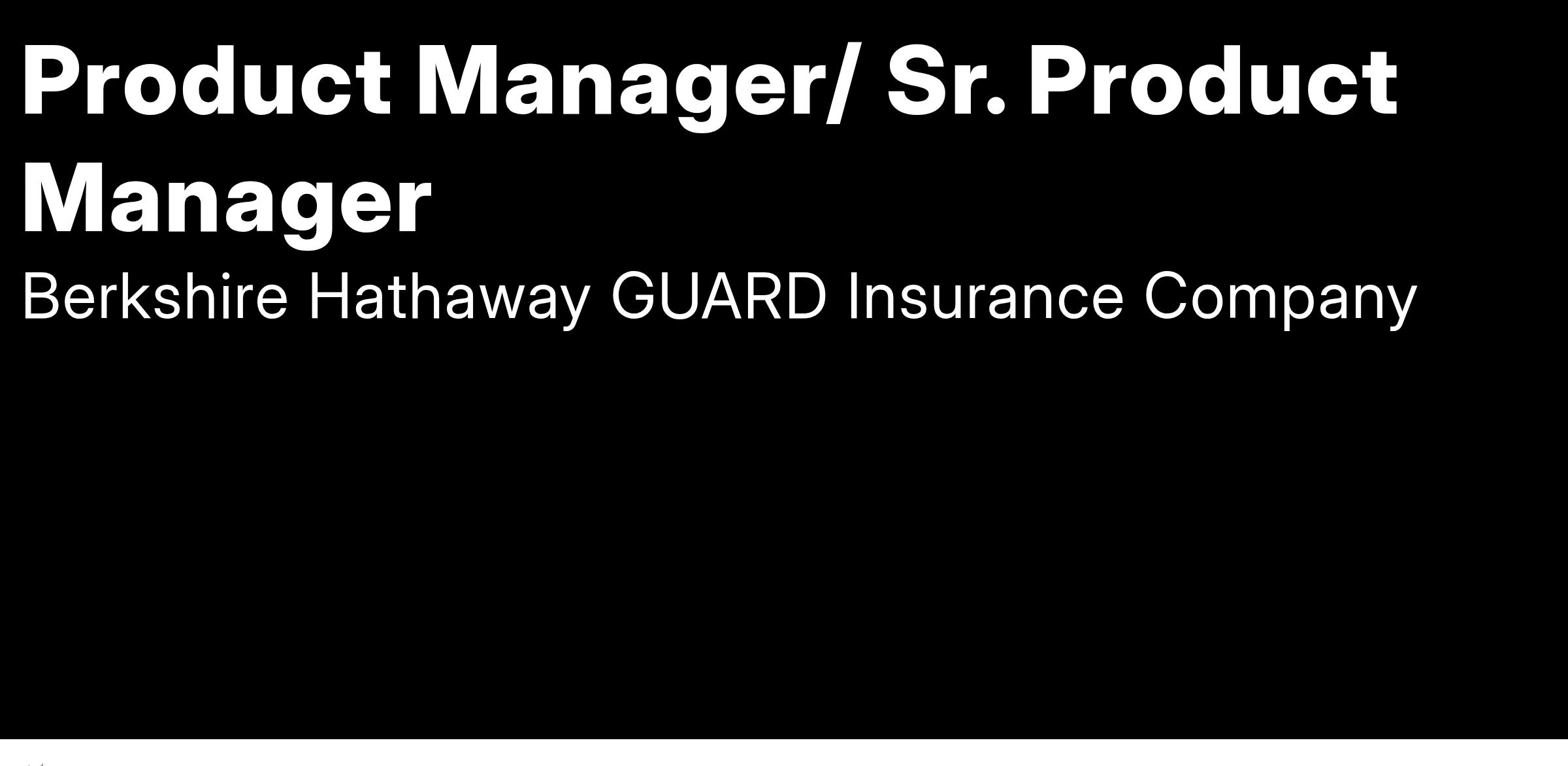 Berkshire Hathaway GUARD is seeking talented and results-driven professionals to join our team as either aΒ Product ManagerΒ orΒ Sr. Product Manager,Β to collaborate closely with the line of business leader, playing a pivotal role in documenting and versioning strategies. This role requires a strong ability to contribute date-driven and experience -driven ideas, actively supporting the execution of strategic initiatives.Β The position can be located in either Wilkes-Barre, PA, New York, NY, Philadelphia, PA, Atlanta, GA and Parsippany, NJ.Β